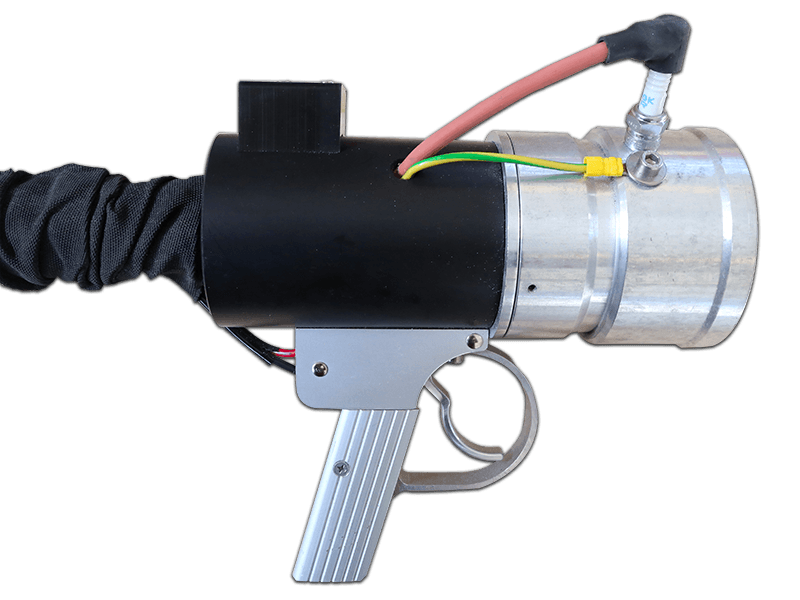 Con impugnatura e grilletto, per il rivestimento di superfici metalliche, nelle varianti sia manuale e automatica (con dispositivo di auto-accensione direttamente sulla pistola).