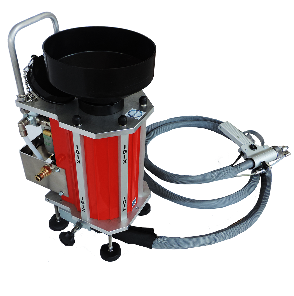 IBIX NANO 3 Kit dotato di un serbatoio da 2,5 litri a svuotamento totale, che facilita le operazioni di cambio inerte, evitando i rischi di contaminazione fra i materiali. Questo é possibile grazie ad uno speciale imbuto in plastica stampata, fissato all’interno del serbatoio della macchina IBIX. Il modello IBIX è fornito nelle verisioni DRY, H2O ed HELIX.