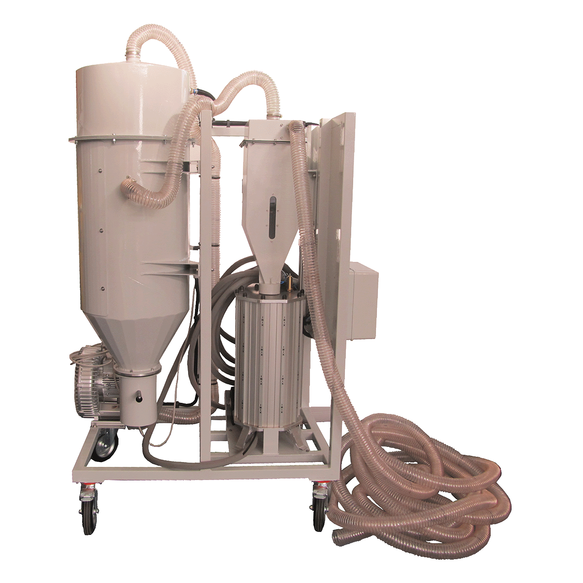 Il gruppo di recupero inerti è costituito da un’apposita struttura contenente un ciclone specificatamente progettato per il recupero e il riciclo degli inerti normalmente utilizzati con i Sistemi di sabbiatura ecologica IBIX®.