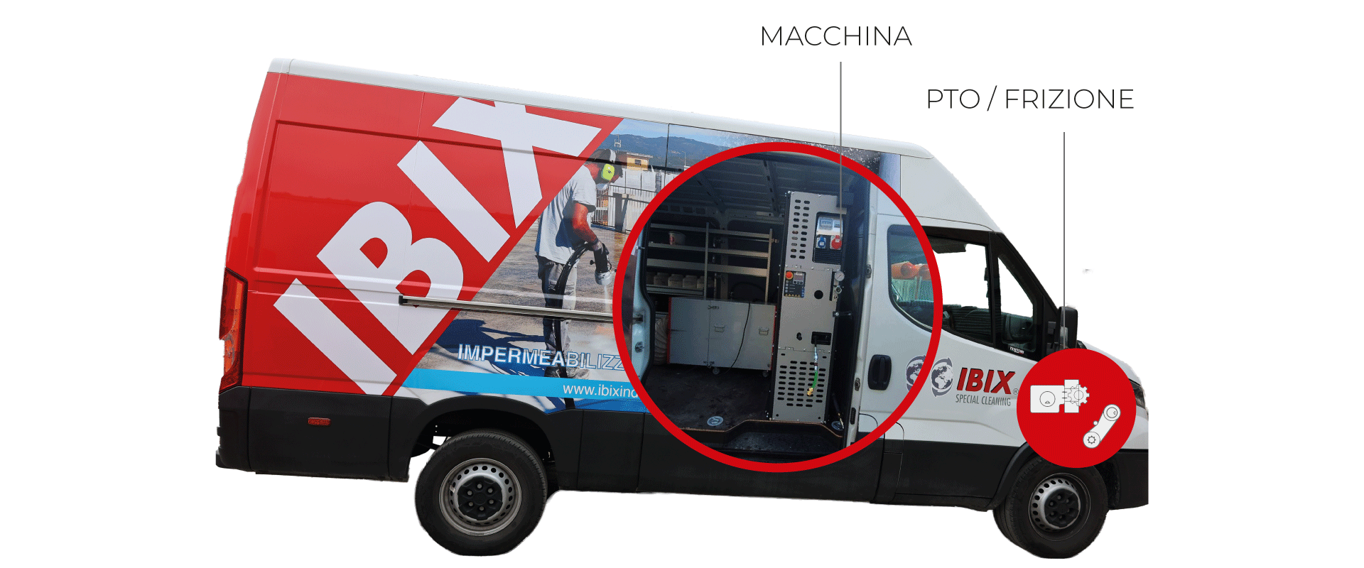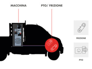 Utilizzando una pompa idraulica collegata al motore dell’automezzo tramite: