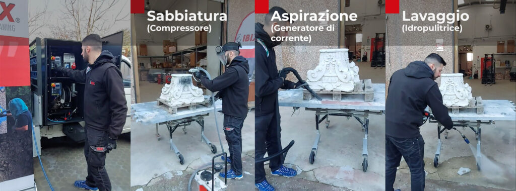 Aeropulitrice a doppia funzione (secco/umido) per pulitura ecologica, micro-aero-abrasione, soda blasting